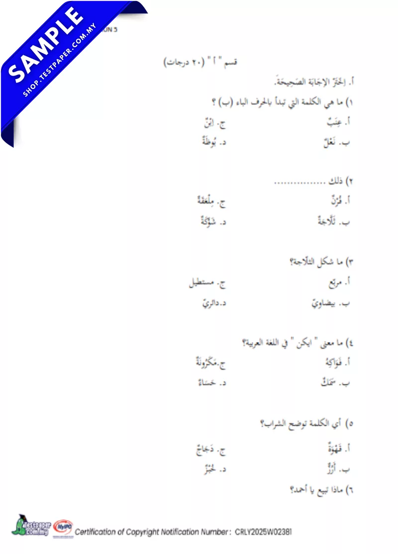 Dokumen Soalan Akhir Bahasa Arab Tahun 5 2025 UASA Dalam Pakej Word dan JSU