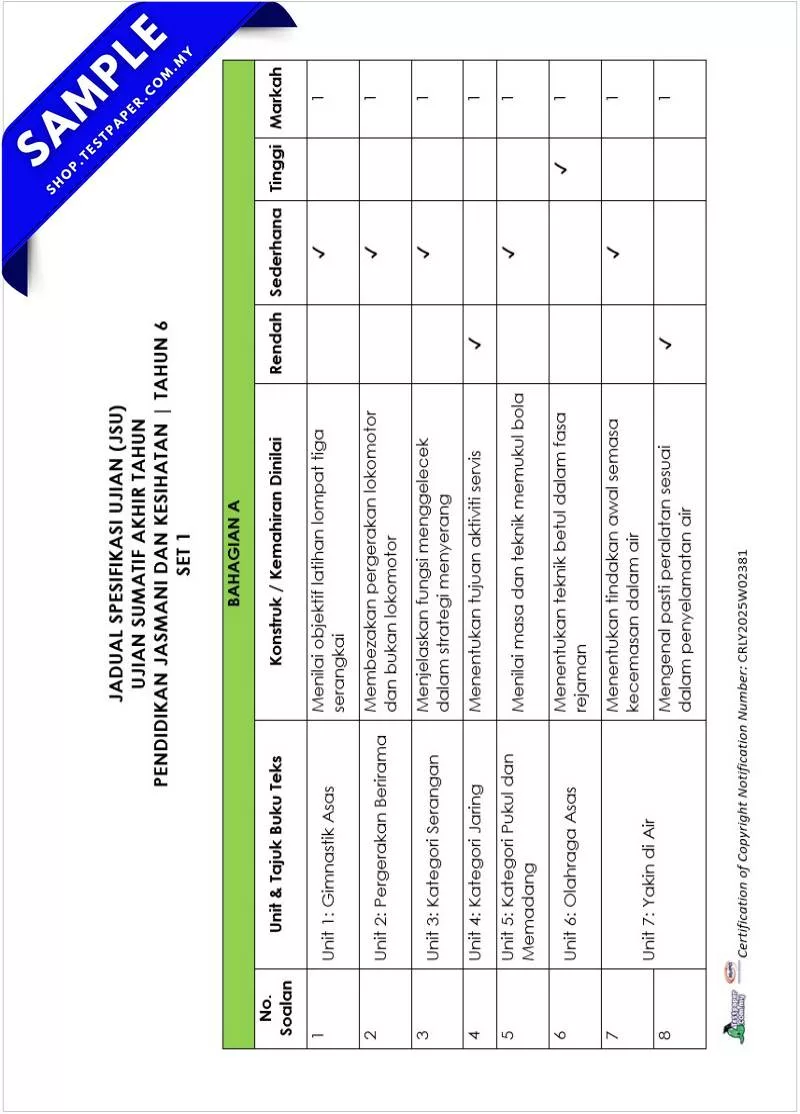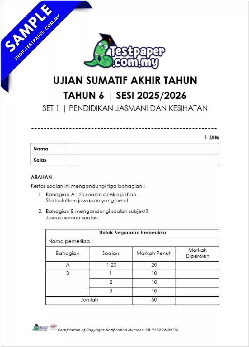 Setiap guru pasti memerlukan bahan sokongan yang lengkap dan mudah diubah suai bagi memastikan proses pengajaran dan pentaksiran berjalan lancar. Bagi guru Pendidikan Jasmani, Penjagaan Diri dan Kesihatan (PJPK) Tahun 6, 2 Set Soalan Akhir PJPK Tahun 6 2025 ini hadir dalam format Word yang boleh diedit sepenuhnya serta disertakan Jadual Spesifikasi Ujian (JSU) sebagai panduan terperinci. Modul ini direka khas untuk membantu guru menyediakan evidens pentaksiran bilik darjah, latihan, dan persediaan ujian sumatif secara menyeluruh, selaras dengan format rasmi Ujian Amali dan Sumatif Akhir (UASA). Dengan adanya modul ini, guru dapat menjimatkan masa dalam menyediakan soalan sambil memastikan kualiti penilaian menepati piawaian yang ditetapkan.