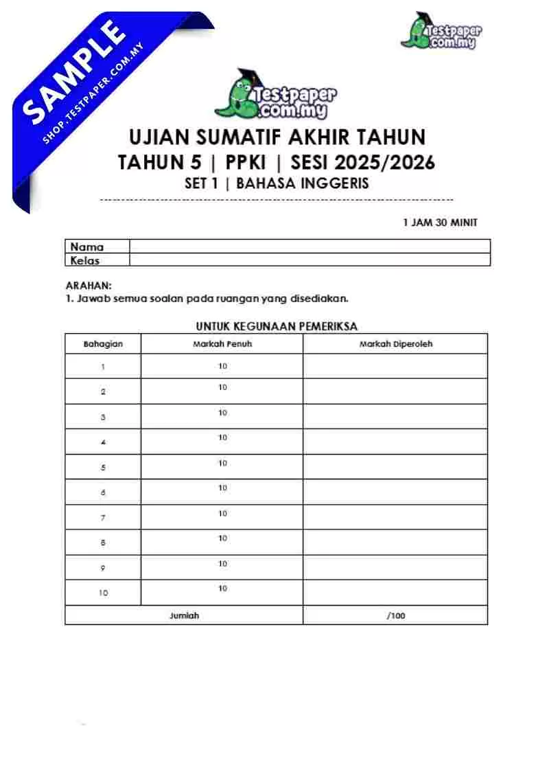 Bahan Soalan Akhir Tahun Bahasa Inggeris PPKI Tahun 5 2025 yang Terdapat PDF dan Word
