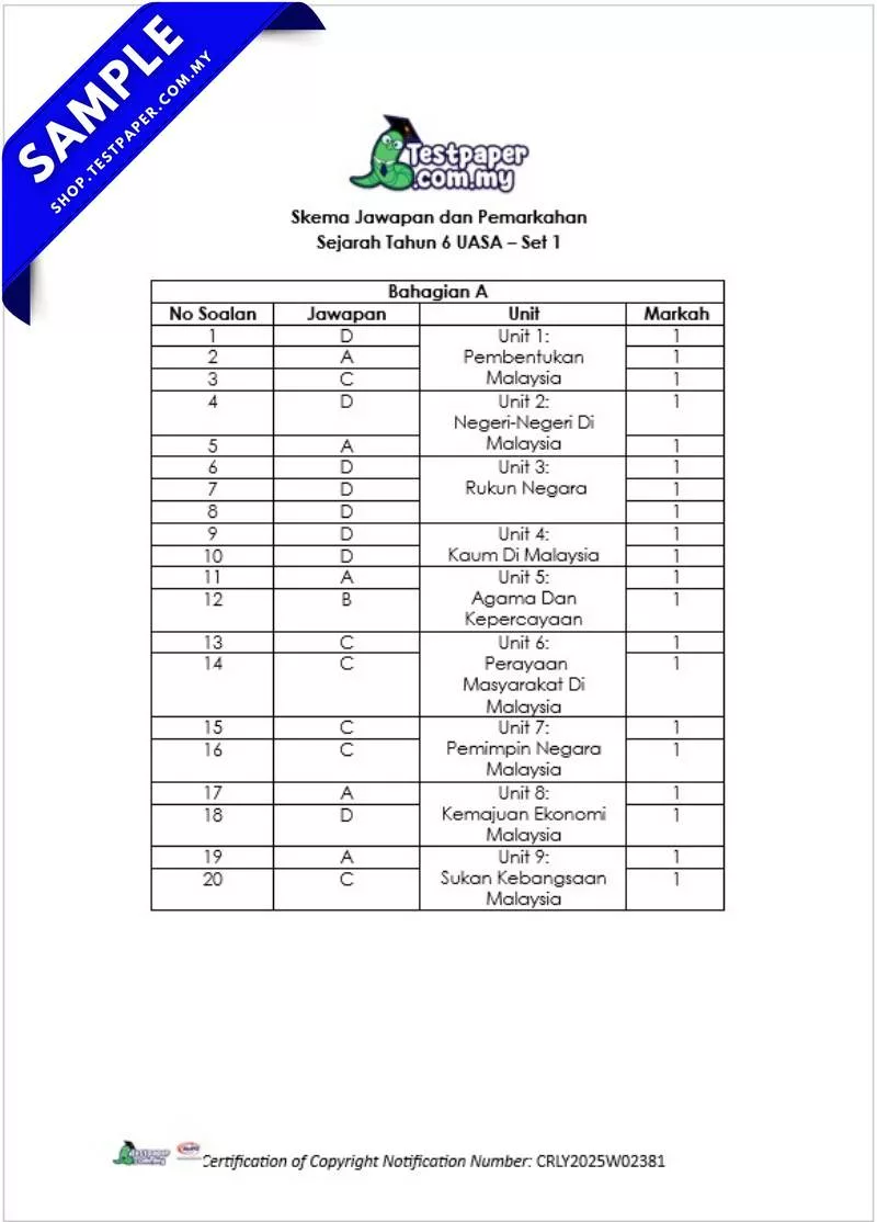 - Tiada watermark pada skema jawapan – sesuai untuk semakan murid dan guru