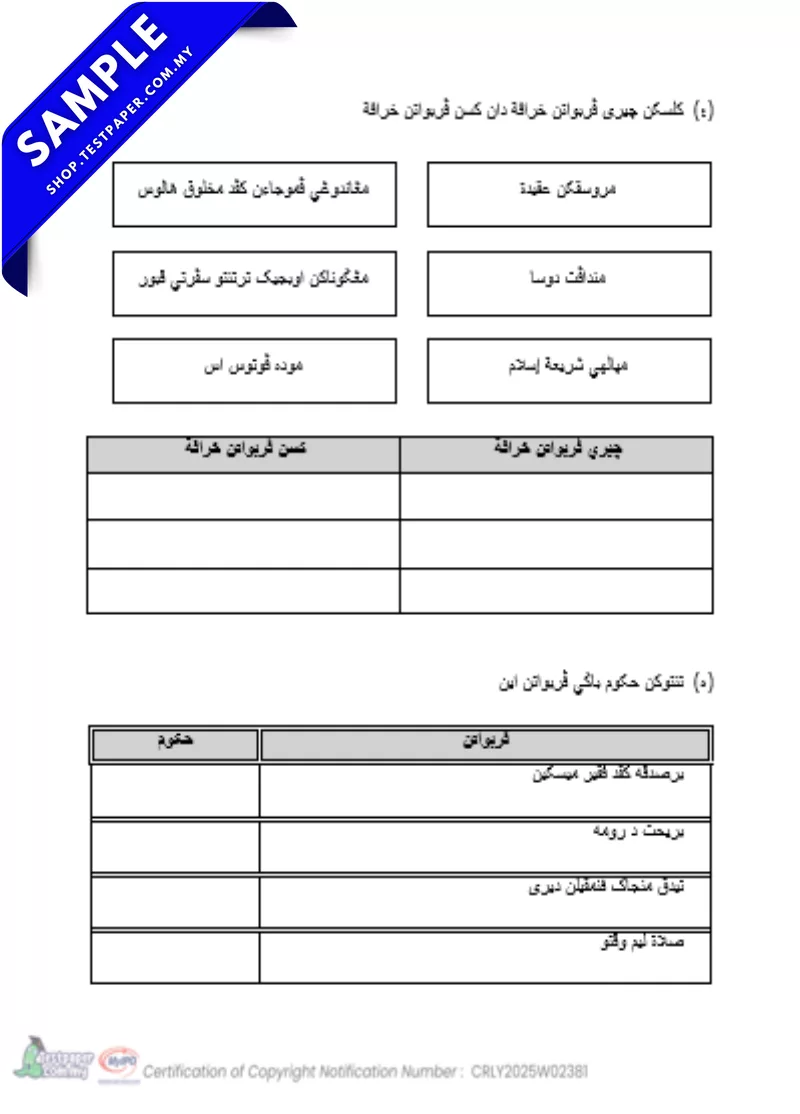 • Sesuai untuk pentaksiran bilik darjah, fail evidens, dan latihan sumatif.