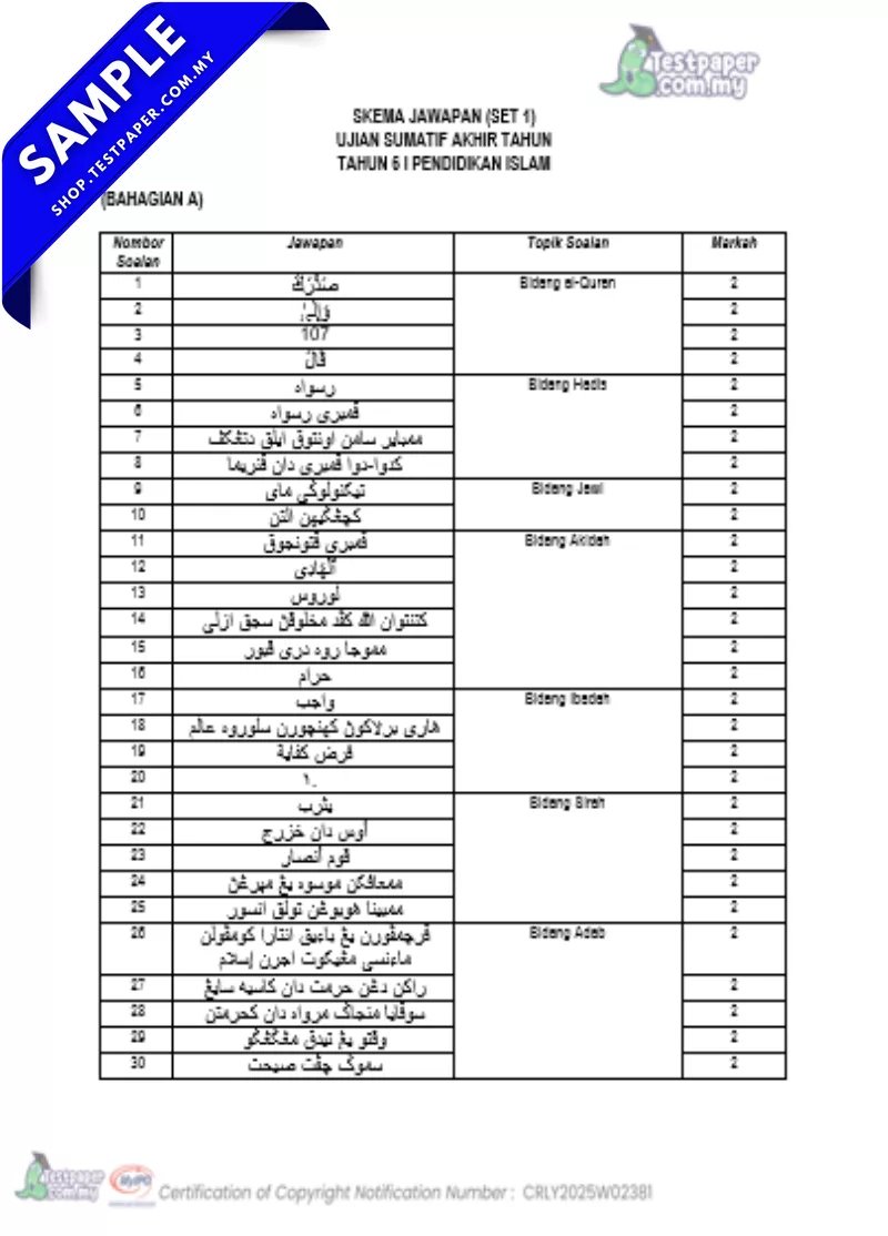 • Skema jawapan tanpa watermark – sesuai untuk semakan guru atau murid