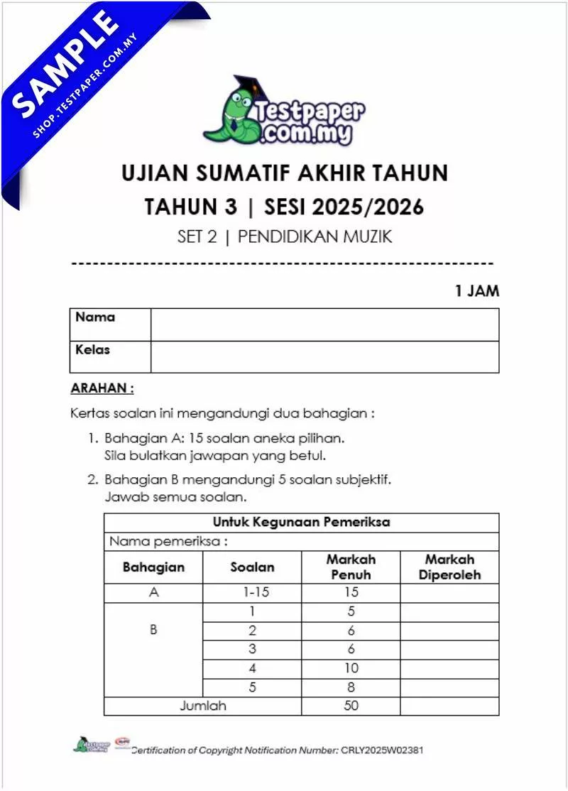Penerangan Download Ujian Pendidikan Muzik Akhir Tahun 3 2025 Berserta JSU