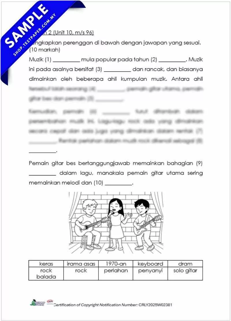 - Terdapat 2 set soalan lengkap yang merangkumi pelbagai kemahiran muzik serta diselaraskan dengan silibus.