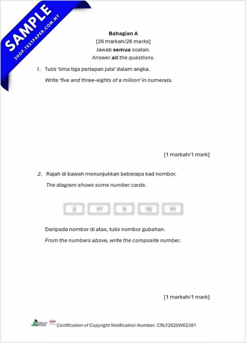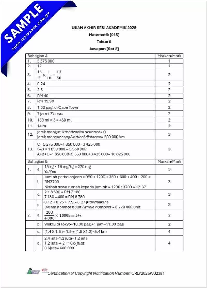 - Mengandungi 2 set soalan lengkap untuk persediaan murid