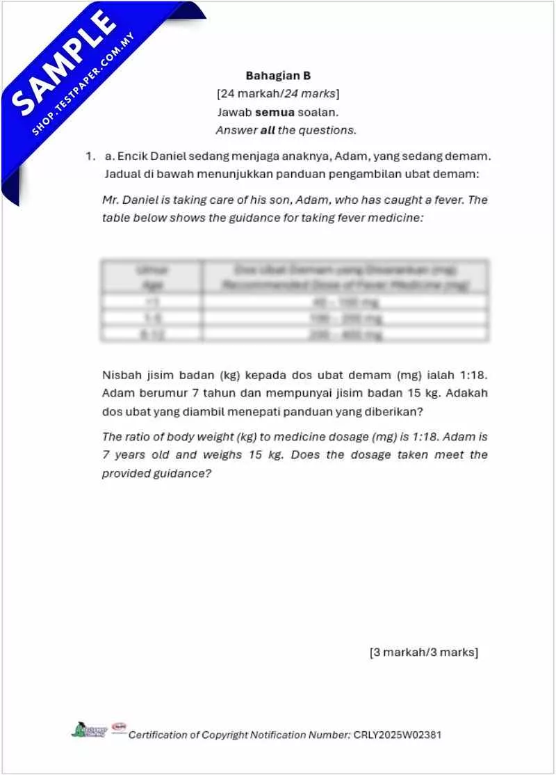 - Soalan dan skema jawapan tersedia dalam dwibahasa untuk fleksibiliti penggunaan